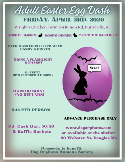 © Copyright Dog Orphans, Inc. All rights reserved.Dog Orphans, Inc. | 90 Webster Street (Route 16) | Douglas, MA 01516 | 508.476.1855